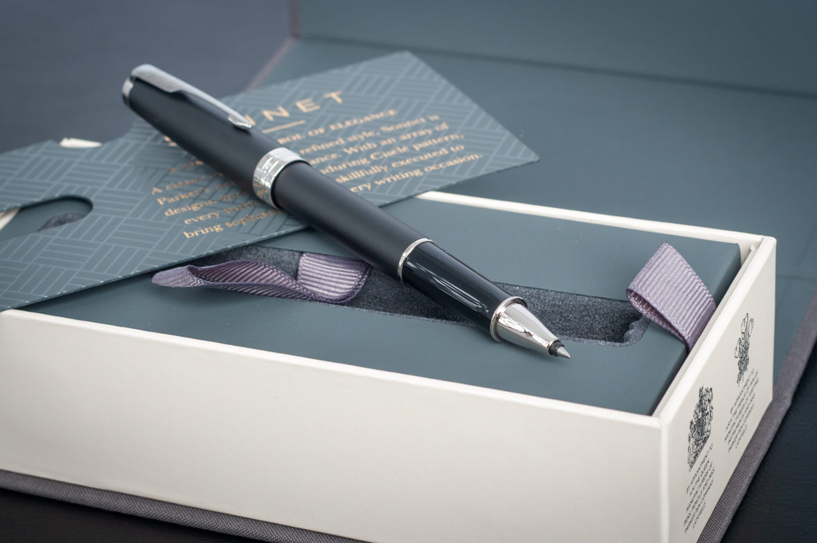 Ручка роллер Parker Sonnet Matte Black CT от официального дилера Parker в Химках. Вы можете дополнительно заказать гравировку, которая подчеркнет Вашу оригинальность и придаст памятность статусному подарку. Все ручки Паркер поставляются в фирменном футляре.
